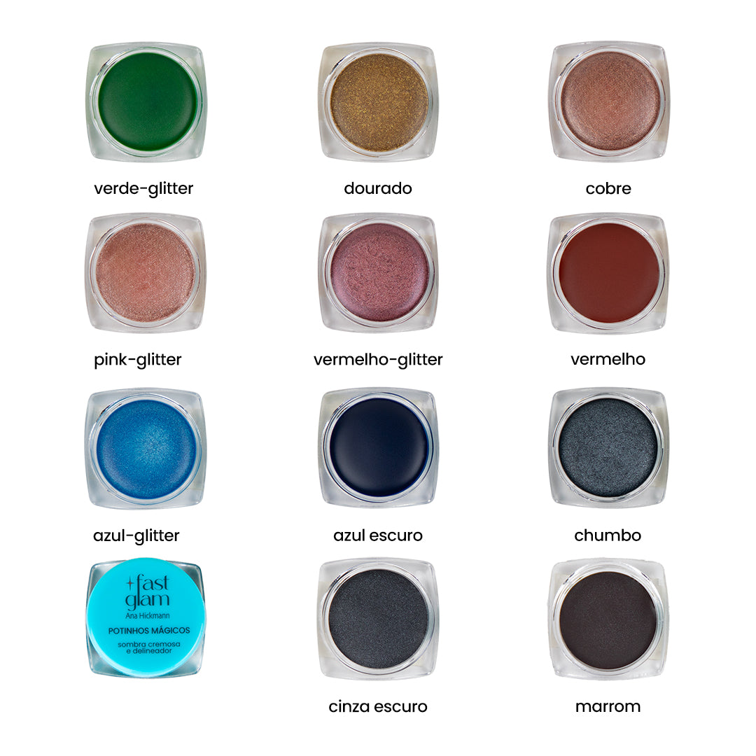 Disponíveis em 12 cores incríveis, com acabamentos matte, metálico e glitter, para você criar looks mágicos do jeitinho que imaginar. 🎨✨